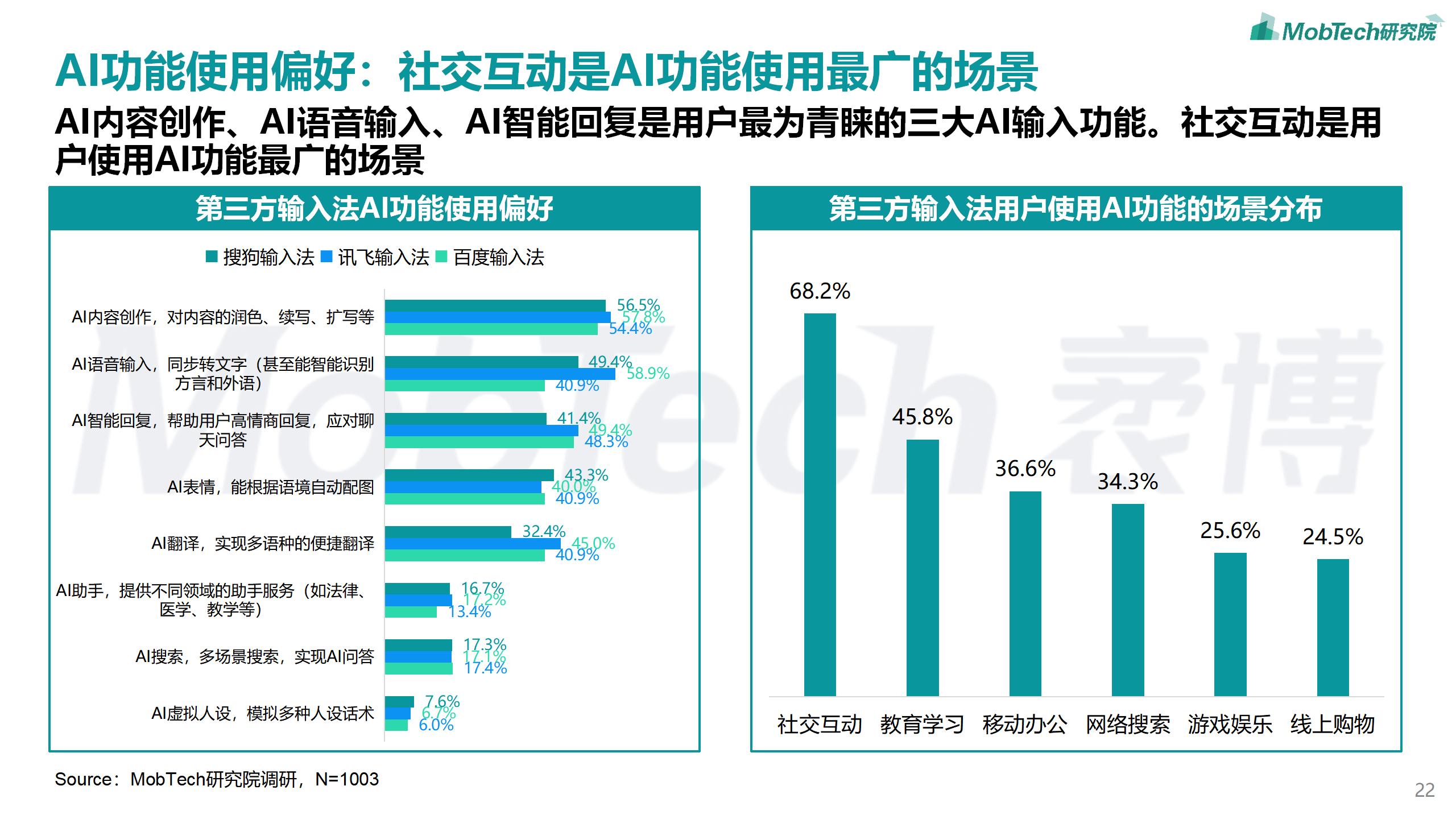 AI内容创作、AI语音输入、AI智能回复是用户最为青睐的三大AI输入功能;