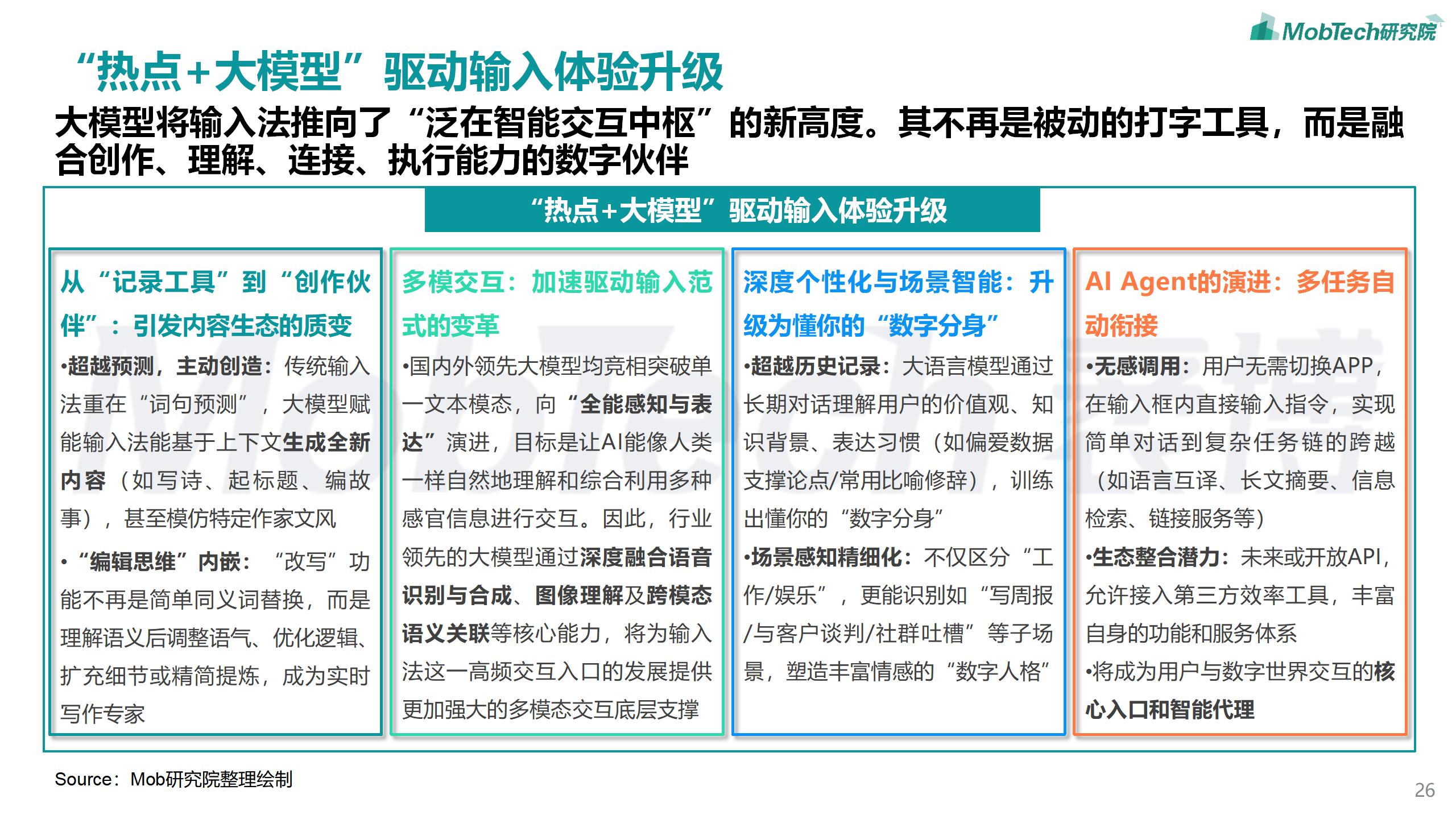 大模型将输入法推向了“泛在智能交互中枢”的新高度。其不再是被动的打字工具,而是融合创作、理解、连接、执行能力的数字伙伴;